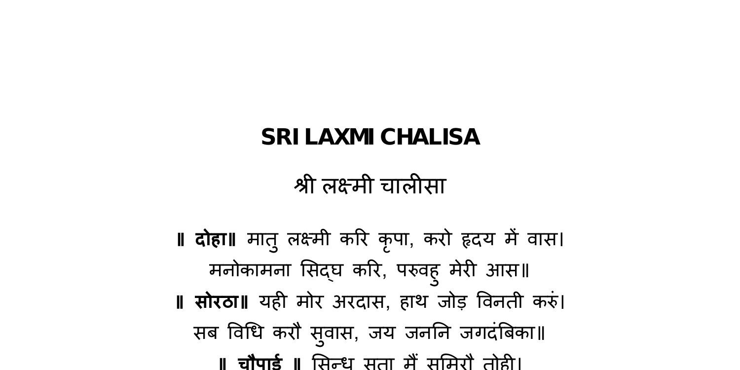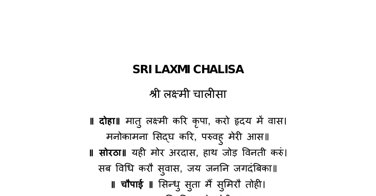 She is the goddess of wealth and prosperity both material and spiritual. Web Text title. Laxmi Chalisa is a forty verse prayer dedicated to.
